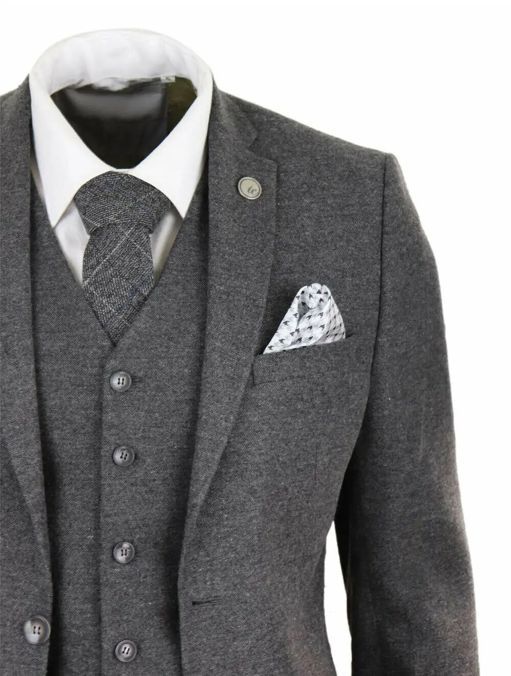 Special Offer Szary Męskie Garnitury Wełna Tweed Peaky Blinders Garnitur 3 Sztuka Autentyczne 1920s Dostosowane Fit Klasyczny Vintage Smokingi ślubne Discount 10% Today!