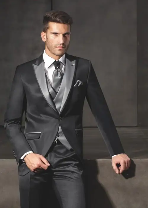 Special Offer New Arrival Garnitur Weselny Dla Mężczyzn Srebrny Szary 2018 ślub Smokingi Garnitury Męskie Garnitur Groomsmen Garnitur Kurtka + Spodnie + Krawat + Kamizelka Discount 10% Today!