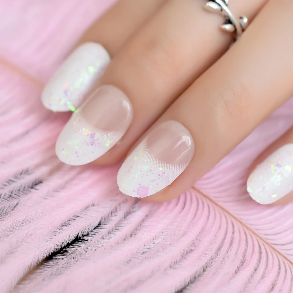 Special Offer Olśniewające Okrągłe Francuskie Paznokcie Ozdoba Z Brokatem średnie Pełne Pokrycie Zaprojektowane Akrylowe Tipsy DIY Faux Ongles Z870 Discount 25% Today!