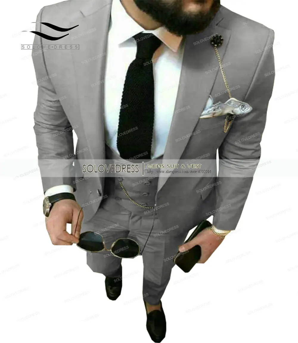 Special Offer Męskie Srebrno-szare Garnitury Biurowe 3 Szt. Regularny Krój Wycięcie Klapy Prom Niebieskie Podwójne Smokingi Na Wesele Pana Młodego (marynarka + Spodnie + Kamizelka) Discount 50% Today!