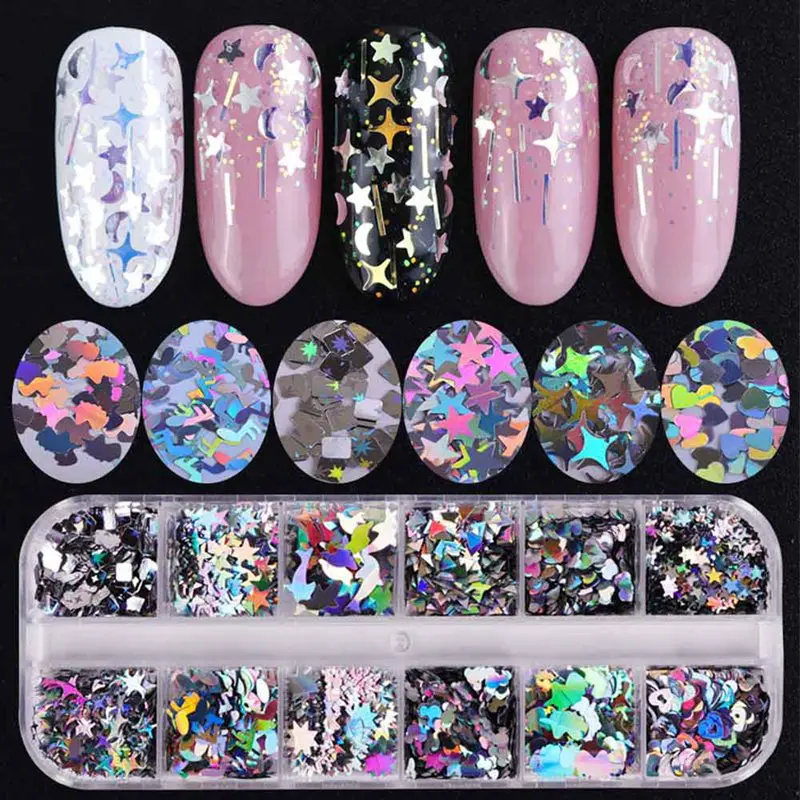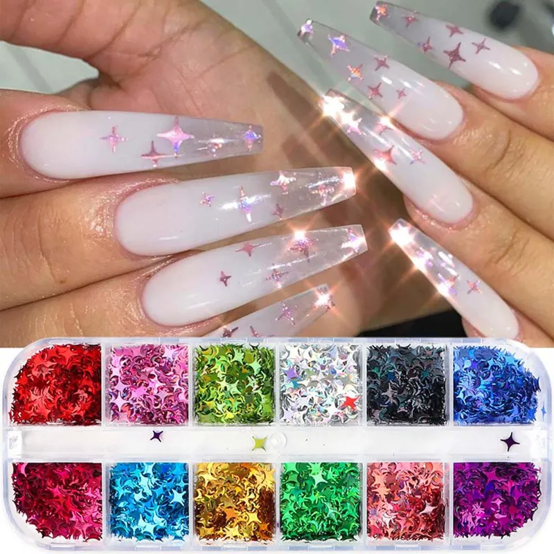 Special Offer 12 Siatki/zestaw Wysokiej Jakości 12 Kolorów Mix Kolorów Brokat Holograficzne Gwiazdy Cekiny Cekiny Do Paznokci Naklejki DIY Paznokci Naklejka Artystyczna Discount 22% Today!