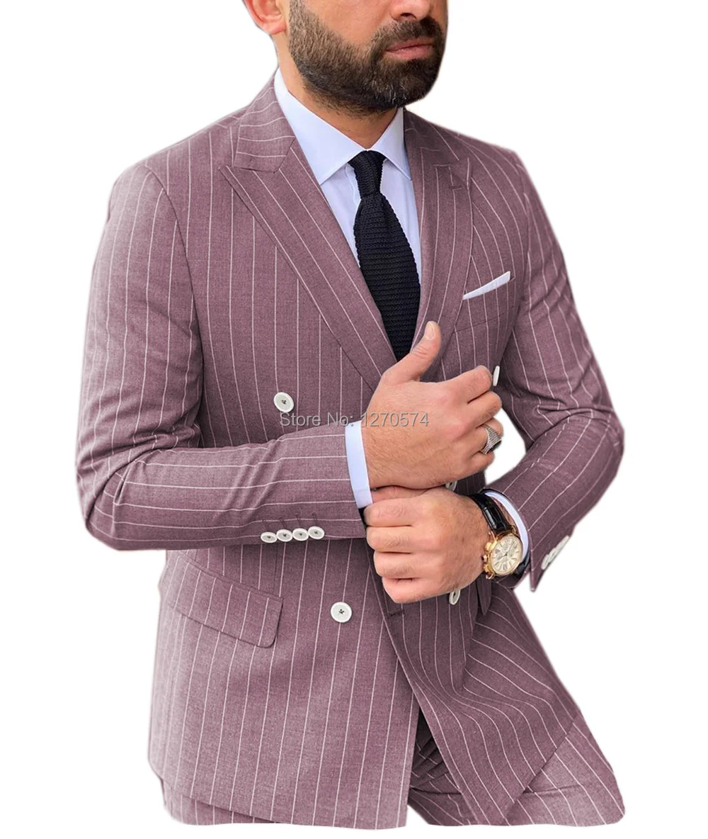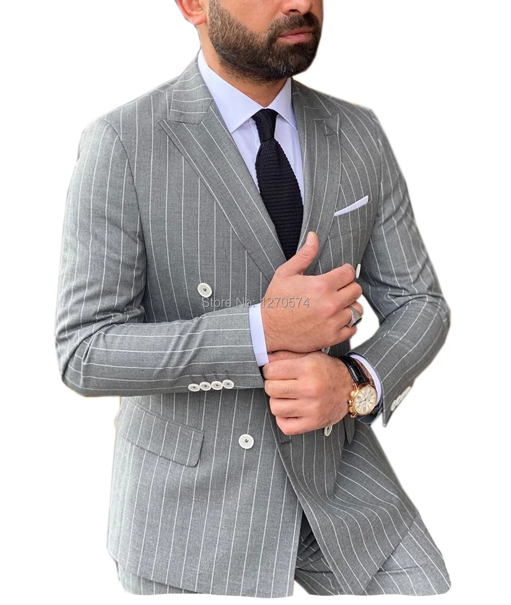 Special Offer 2020 Srebrny Szary Mężczyźni Garnitury W Paski Wycięcie Klapy 2 Sztuk Podwójne Piersi Smokingi Dla Pana Młodego Marynarka Na Studniówkę Na ślub (Blazer + Spodnie) Discount 30% Today!