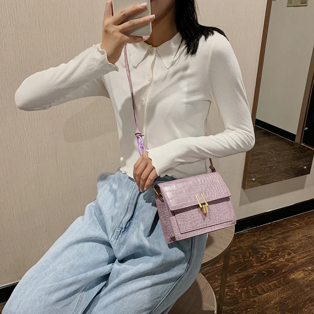 Special Offer Popularna Prosta Damska Codzienna Torba Moda Akrylowa łańcuszek Damska Torba Na Ramię Alligator PU Podróżna Na Ramię Tornister Discount 54% Today!