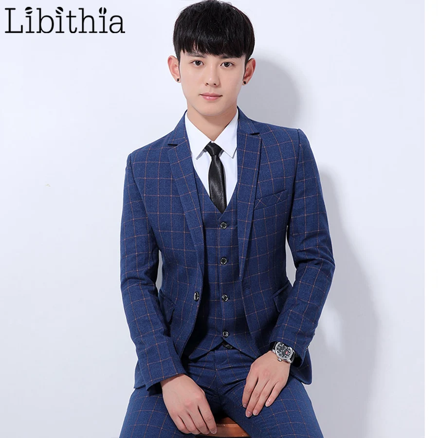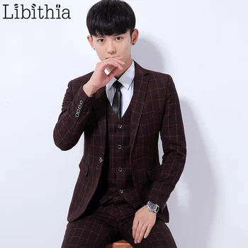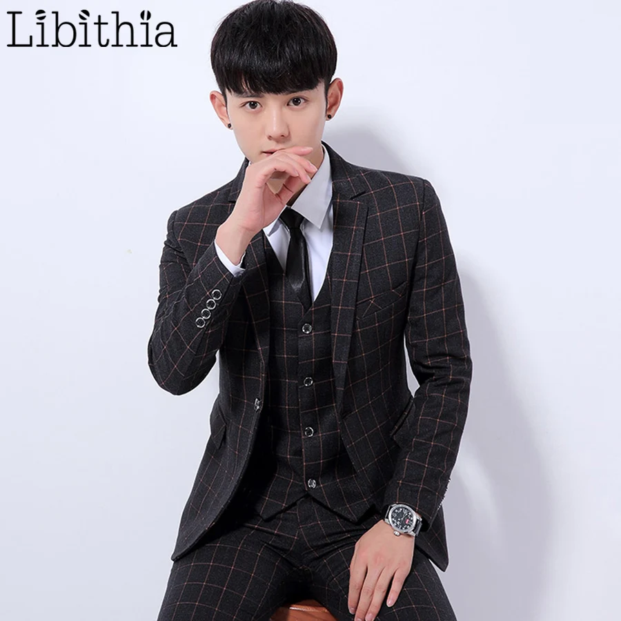 . (Zniżka 40%) Skup (Kurtka + Spodnie + Kamizelka) Mężczyźni Biznes Garnitury Kratę Jeden Przycisk 3XL Slim Fit Mężczyzna Smokingi Garnitury ślubne Odzież Codzienna Mężczyzna Ciemny Szary K314 Najtaniej Ceny.