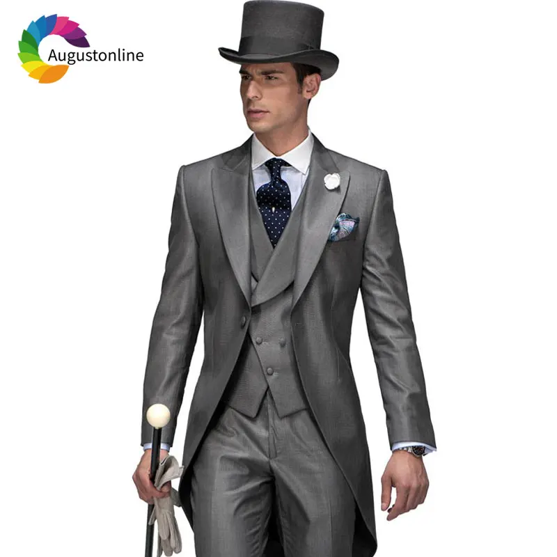 Special Offer Dostosowane Retro Szary Garnitur ślubny Mężczyźni Garnitury Groom Smokingi 3 Sztuka Długa Kurtka Męska Klasyczny Garnitur Kostium Homme Terno Masculino Discount 0% Today!