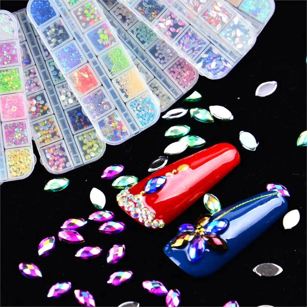 Special Offer 12 Kolorów Kolorowe Kryształowe Cyrkonie Tipsy Akrylowe Kamienie, Koraliki Szpilki Płaskie Plecy Błyszczące Porady 3D Dekoracje Do Zdobienia Paznokci Discount 25% Today!