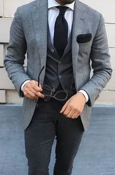 Special Offer Najnowsze Wzory Płaszcz Pant Szary Tweed Mężczyźni Garnitur Slim Fit 3 Sztuka Tuxedo Niestandardowy Groom Garnitury Blazer Terno Masculino Kurtka + Spodnie + Kamizelka Discount 30% Today!