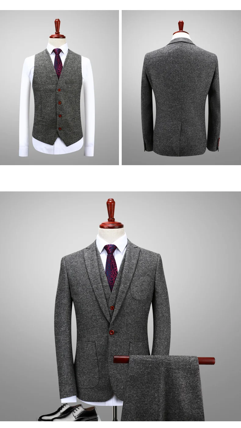 . (Zniżka 30%) Tanie 2017 Najnowsze Wzory Płaszcz Pant Zima Palenia Szary Tweed Mężczyźni Garnitur Pana Młodego Garnitury ślubne Slim Fit 3 Sztuka Tuxedo Niestandardowe Marynarka Terno Ceny.